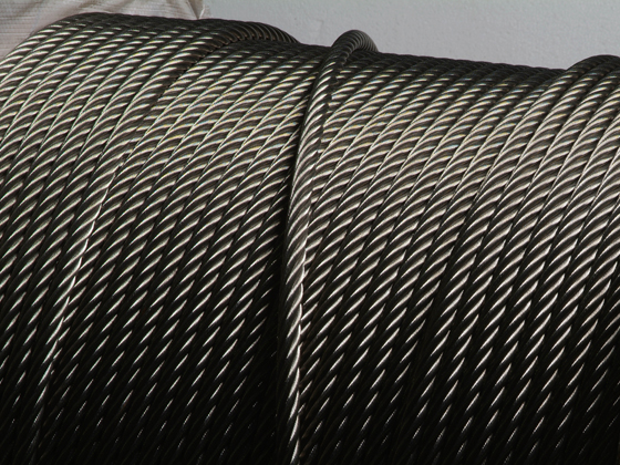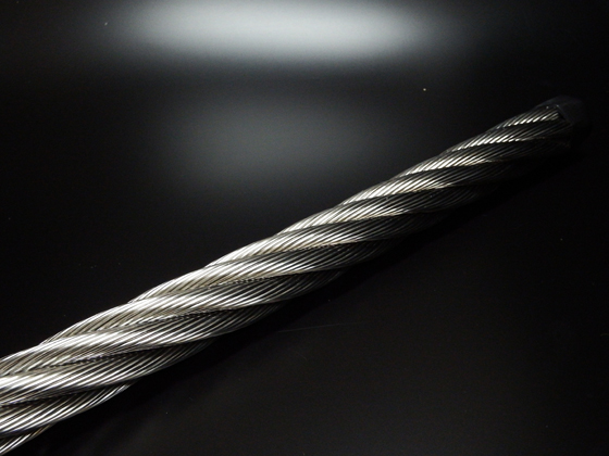 ステンレスワイヤロープ用の材料には、鉄にクロム18%とニッケル8%を混ぜたSUS304と、鉄にクロム16%とニッケル10%とモリブデン2%を混ぜたSUS316の主に二種類製造しており、その鉄にクロムを添加することで表面に非常に薄い酸化皮膜(不動態皮膜)をつくり、周辺環境と反応にしくくなり耐食性が強くなるためです。